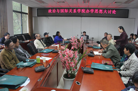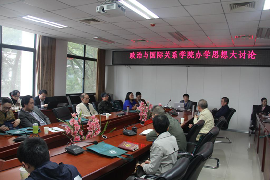 (通讯员 陈质晶 王洁)10月13日下午两点,政治与国际关系学院在309会议室开展办学思想大讨论专题研讨会,本次会议旨在深度解读政国院教学思想,规范本科生教学,促进研究生、本科生教学一体化建设,提高学院一流学科建设水平。本次会议由院长唐鸣、副院长胡宗山主持,全体学院教职工参加。